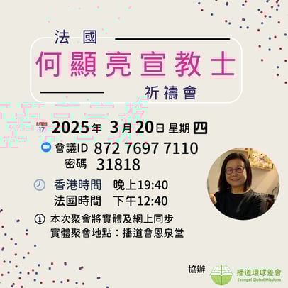我們相信,籍著禱告我們能搖動神大能的手,成就合乎祂心意的事!